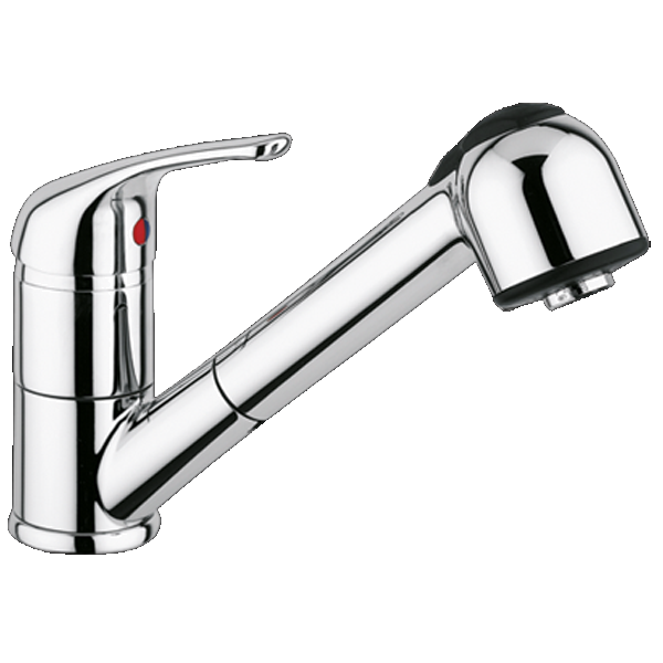 Misturadora monocomando de bica giratória com chuveiro extraível de duplo jacto.