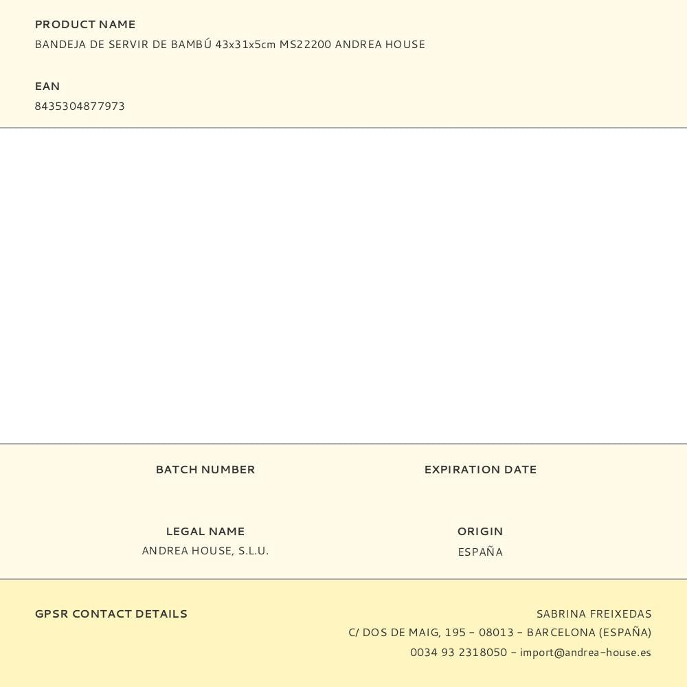 BANDEJA DE SERVIR BAMBU 43X31X5CM MS22200 ANDREA HOUSE