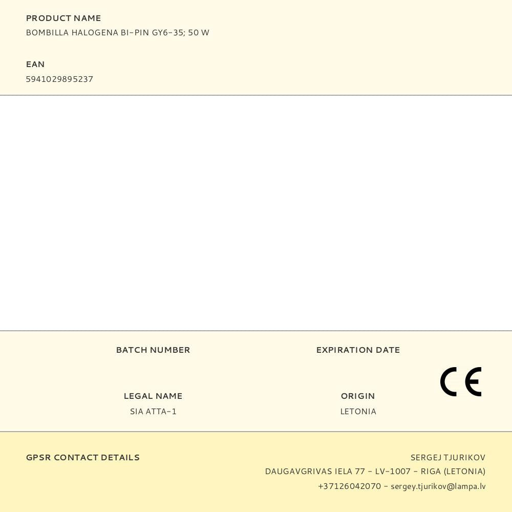 Lâmpada halogénica bi-pin g6-35 50 w, 450 lm, tamanho: 4 cm, vida útil estimada: 2000h, dimável, tensão: 12v