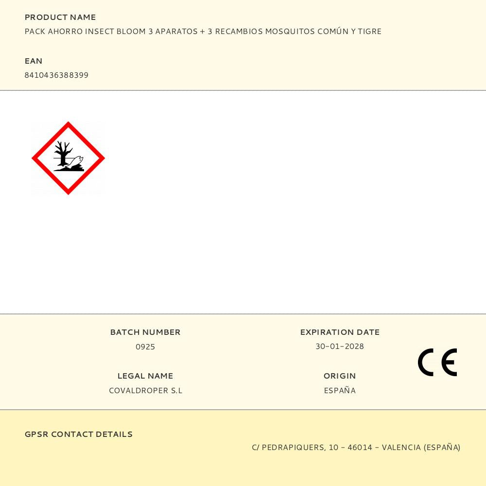 Pack econômico insect bloom 3 unid. aparelho + 3 sobresselente mosquitos comum e tigre