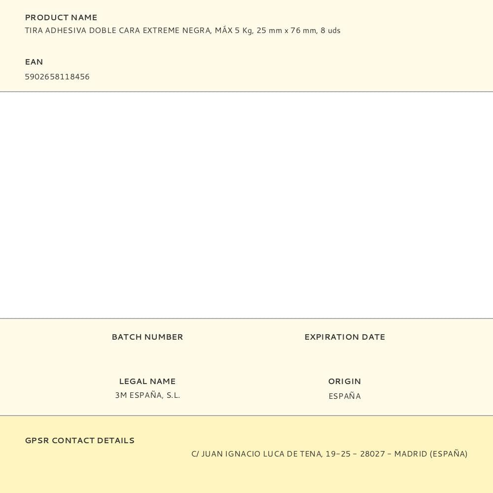 Tira adesiva dupla face extreme preta, máx 5 kg, 25mmx76mm, 8 uds