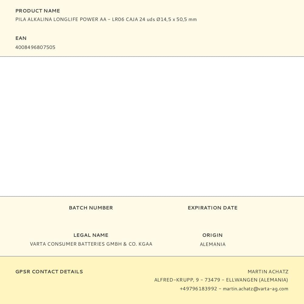 Pilha varta longlife power aa - lr06 caixa 24 unid. ø14,5x50,5mm (diâmetro/altura)
