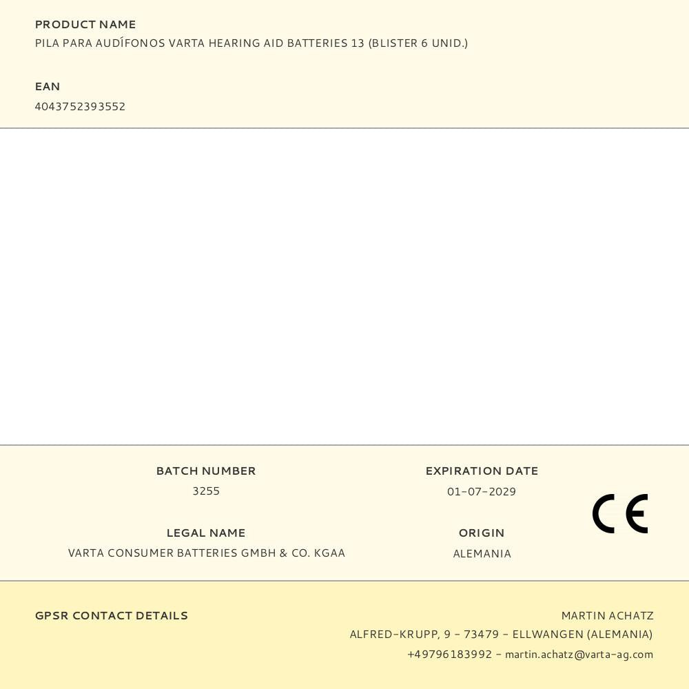 Pilhas para aparelhos auditivos hearing aid batteries 13 (blíster 6 un). as pilhas para aparelhos auditivos de varta proporcionam energia fiável e duradoura da mais alta qualidade e um desempenho superior aos utentes de aparelhos auditivos para que possam ouvir claramente e desfrutar da sua independência. máximo desempenho para a sua independência