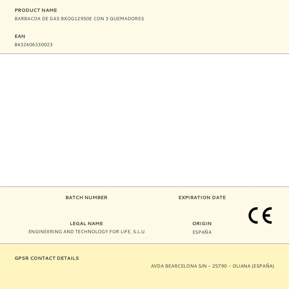 CHURRASQUEIRA A GÁS BXOG12950E DE 4 QUEIMADURAS 126 X 58 X 118,5