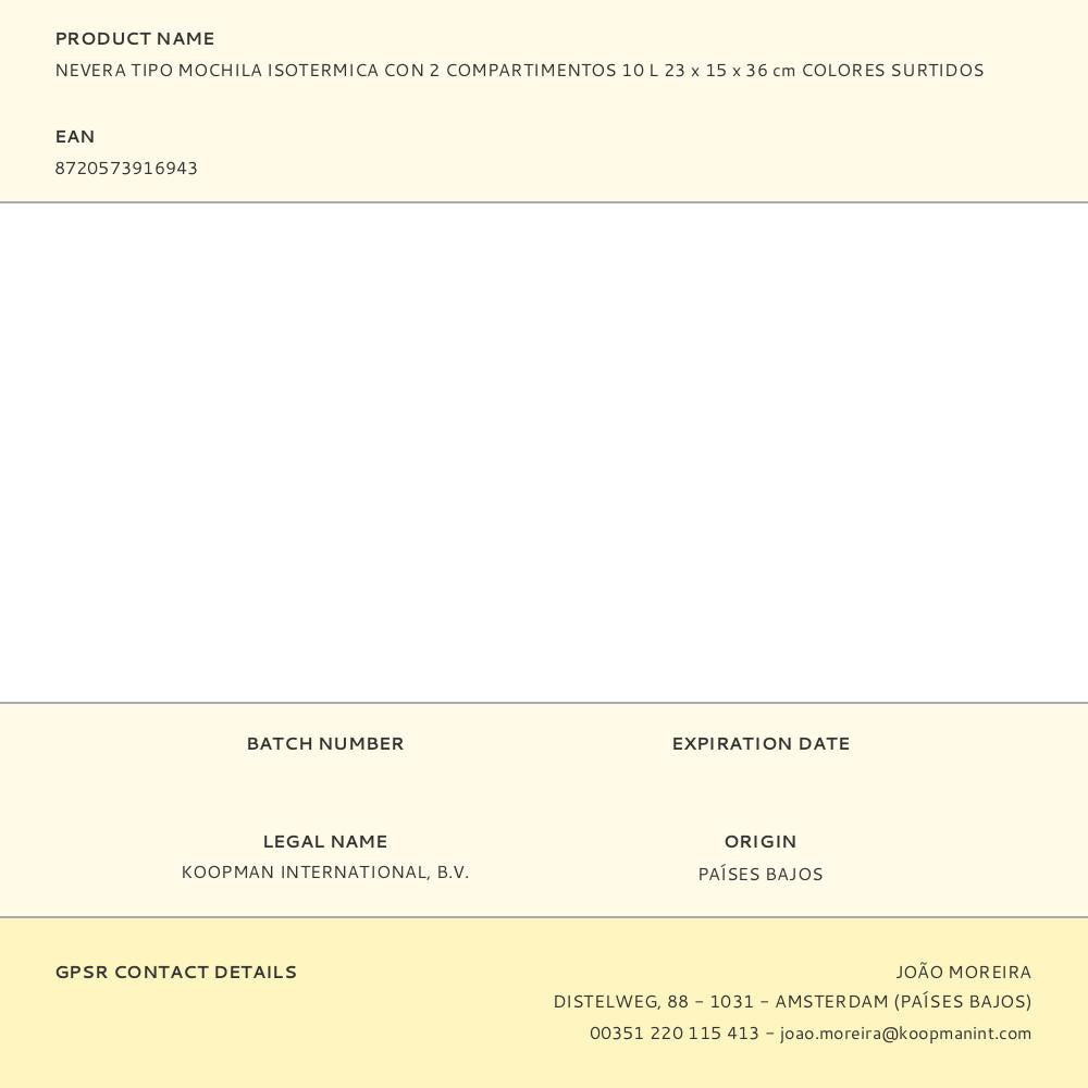 MOCHILA ISOTÉRMICA COM 2 COMPARTIMENTOS 10 L. 23X15X36CM CORES VA