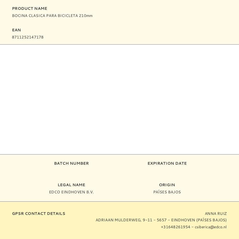 BUZINA CLASSICA PARA BICICLETA 210MM