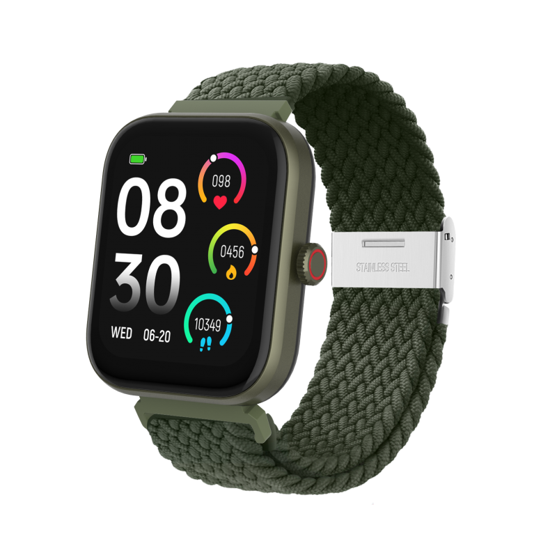 2 tiras de 20 mm incluídas: silicone verde e náilon verde