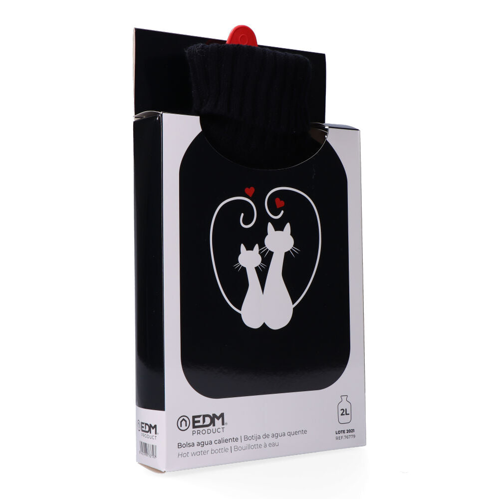 BOTIJA DE ÁGUA QUENTE PRETA. MODELO GATOS APAIXONADOS 2 L EDM