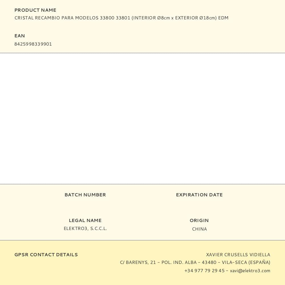 Sobresselente vidro para modelos 33800 33801 (interior ø8cm x exterior ø18cm) edm