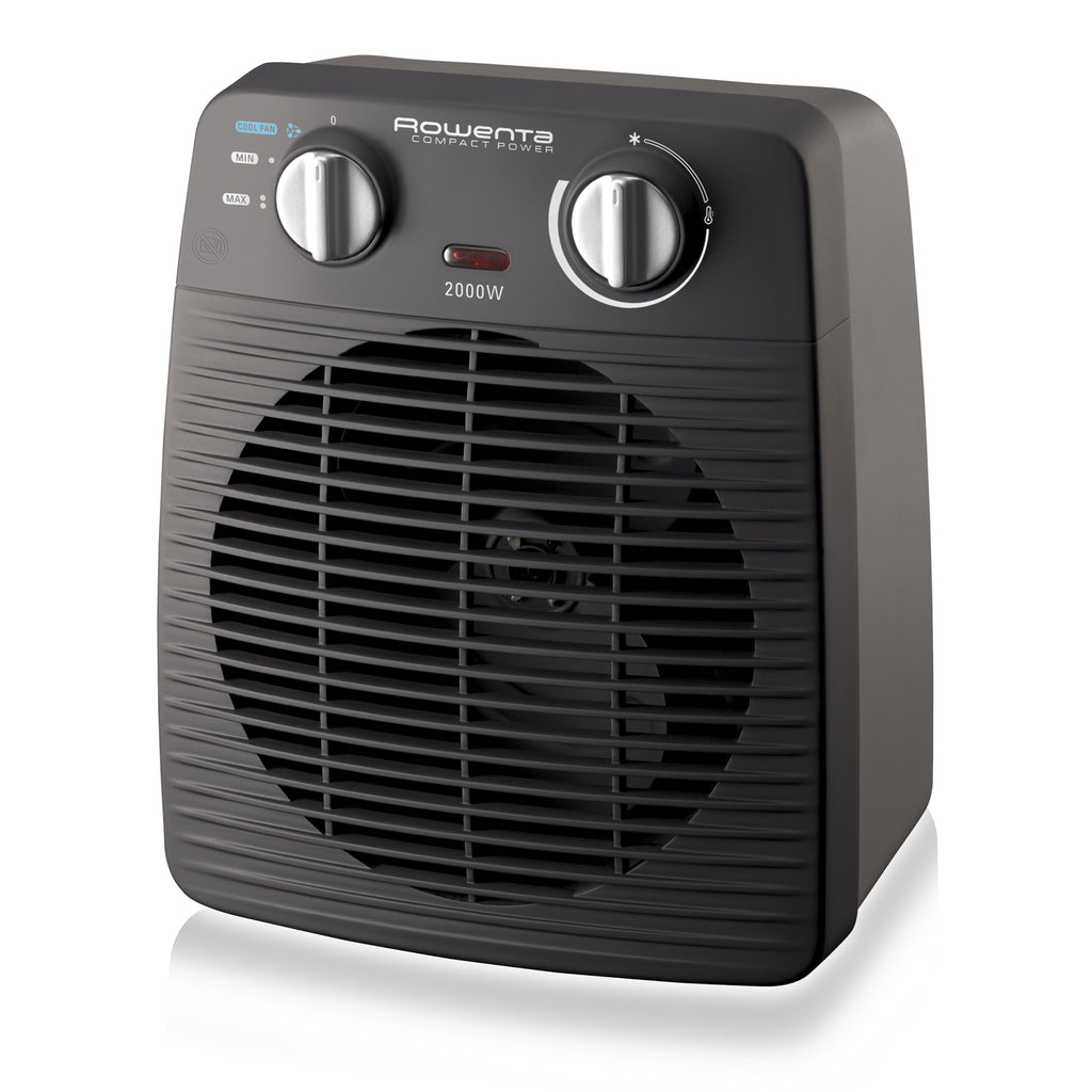 Rowenta Compact Power SO221. Tipo: Termoventilador elétrico, País de origem: China, Comprimento do fio: 1,4 m. Adequado para: Interior, Opções de colocação: Secretária, Chão, Cor do produto: Cinzento, Preto. Potência de calor: 2000 W, Potência do calor (mín.): 1000 W, Apropriado para divisões até: 25 m². Potência: 2000 W, Voltagem de entrada AC: 220 V, Frequência de entrada AC: 50 Hz. Largura: 165 mm, Profundidade: 215 mm, Altura: 260 mm