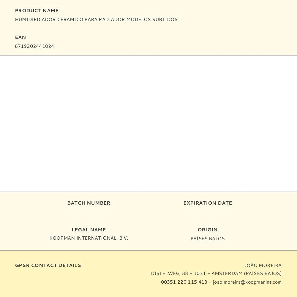 Humidificador cerâmico para radiador 8,5 x 3,5 x 20 cm. modelos sortidos