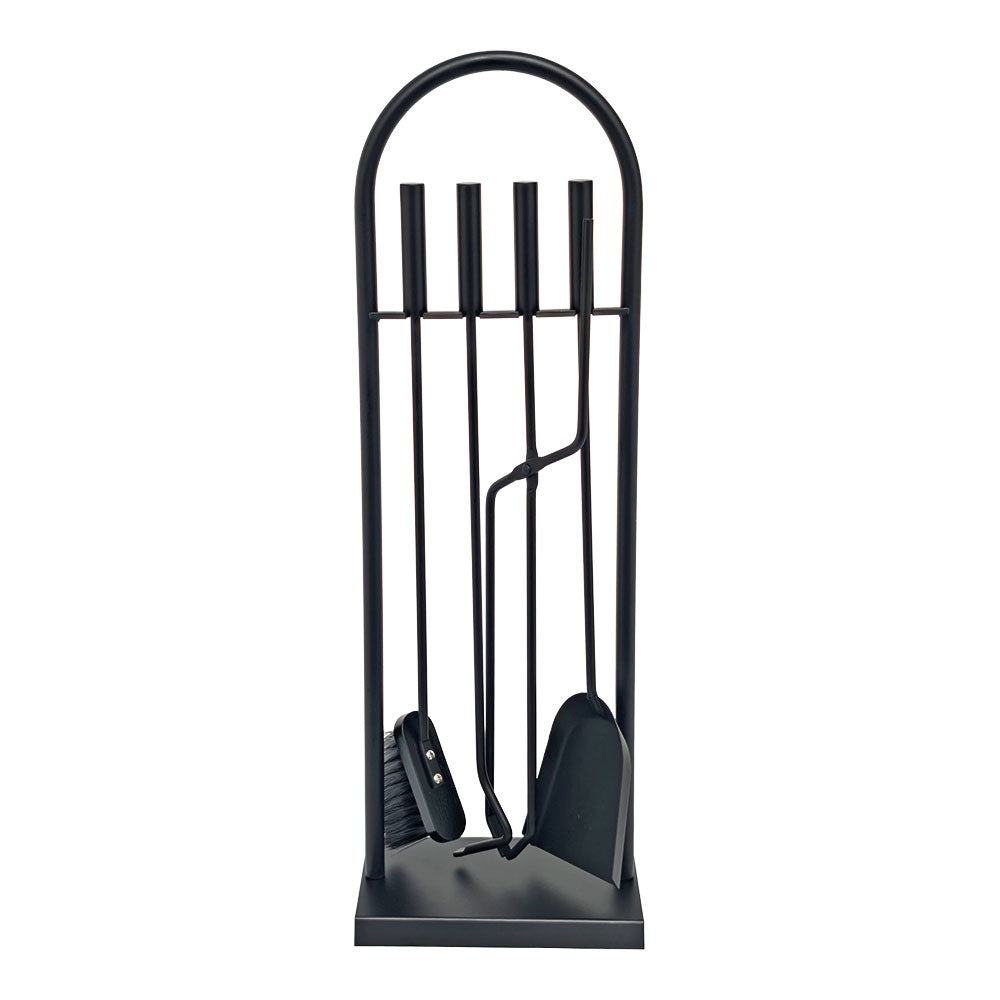 Conjunto de lareira de 4 peças com suporte fabricado em metal revestimento em pó preto inclui atiçador, pinça, pá recolhedora e escova 23 x 68 cm