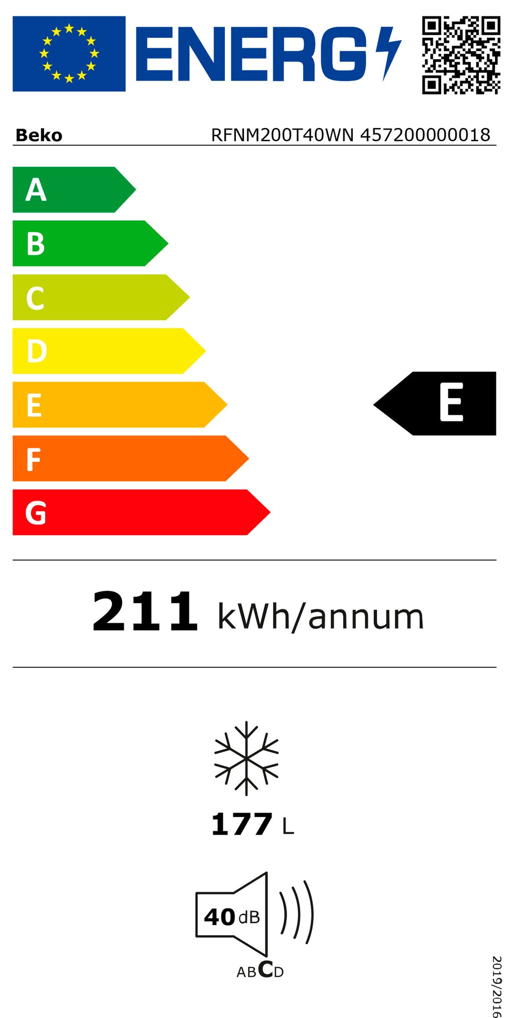BEKO ARCA VERTICAL NF 1457X540X575MT 200LT BRANCO (E)
