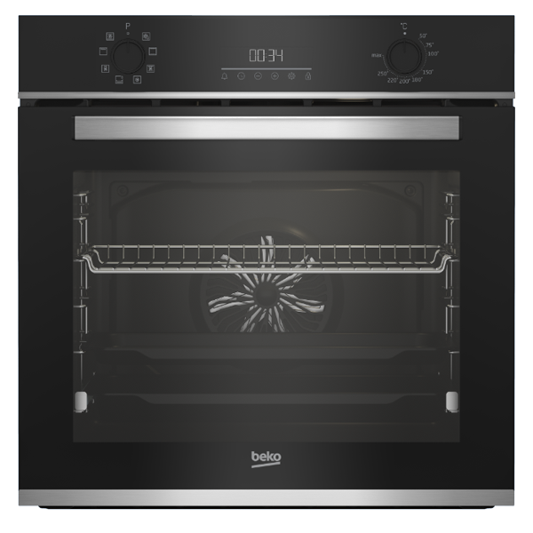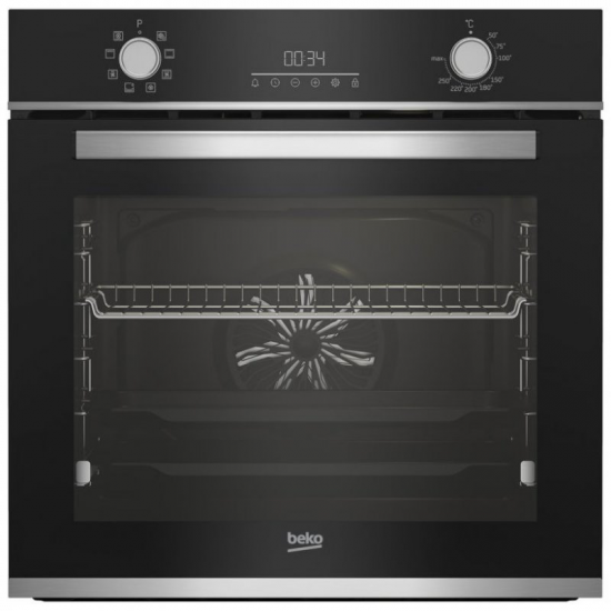 Beko BBIM13300XD. Tamanho do forno: Médio, Tipo de forno: Forno elétrico, Capacidade interior do(s) forno(s) totais: 72 l. Local de colocação: Embutido, Cor do produto: Preto, Aço inoxidável, Tipo de controlo: Rotativo, Toque. Tipo de relógio: Electrónico, Tipo de temporizador: Digital. Classe de eficiência energética: A, Consumo energético (convencional): 0,88 kWh, Consumo energético (convecção forçada): 0,81 kWh. Tipo de lâmpada: Halogénio