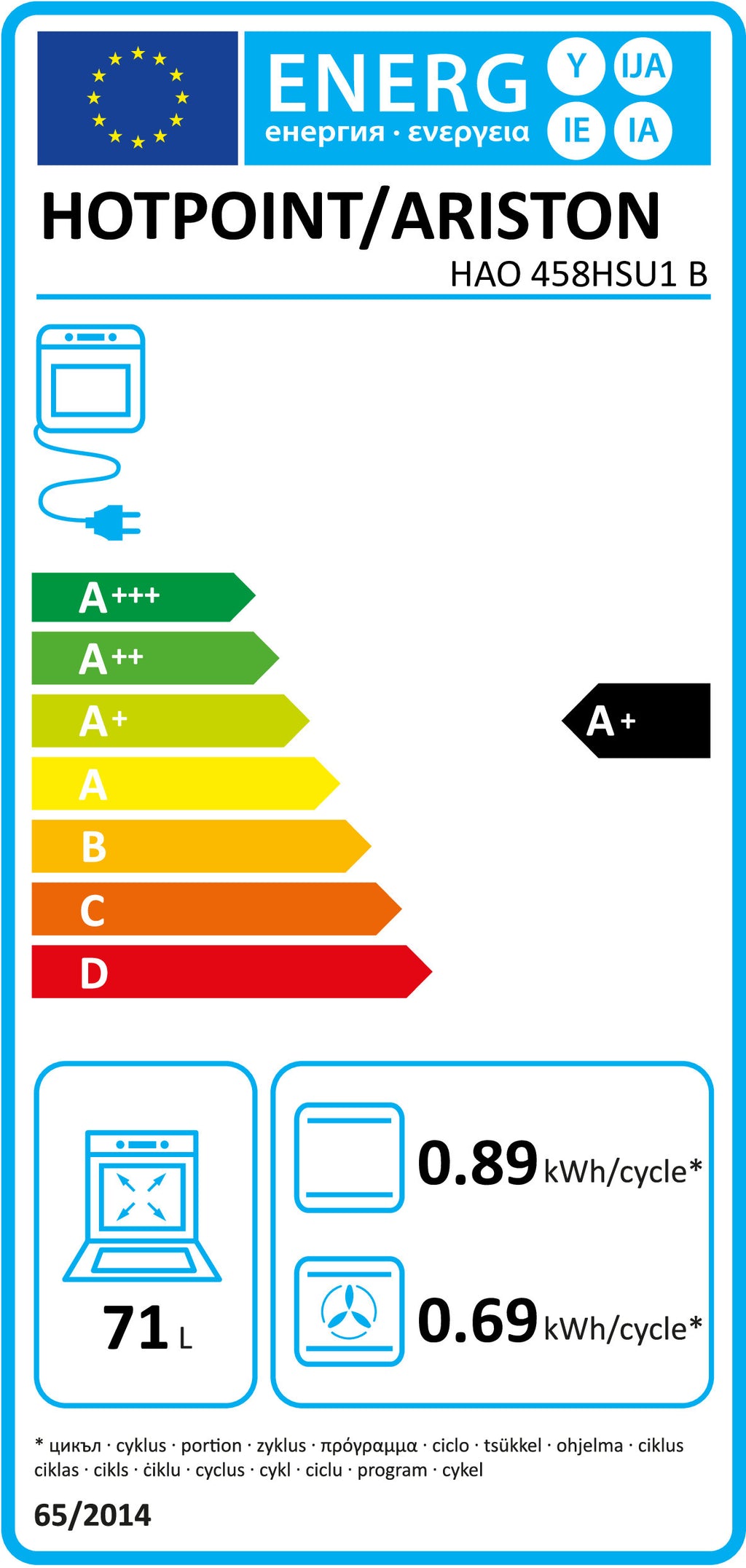 FORNO HOTPOINT HAO 458HSU1 B( MULTIFUNÇÕES - 71 LITROS - 10 P )
