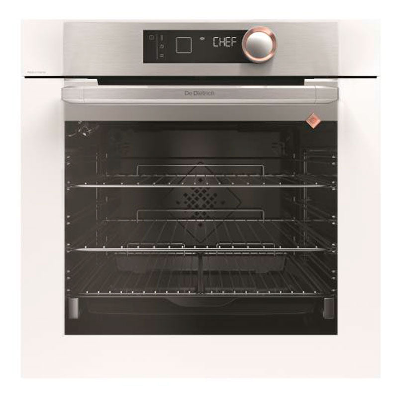nCaracterísticasnn Horno Pirolitico Multifunción 9 - Modo CHEFn Acero INOXCristal Blanco - 35 Recetas predefinidas - Baja Temperaturan Alto: 60 cm - Apertura abatible Soft Close n Terminación Pure White n Display Epicure n Clase energética A+ n Cocción automática Modo Chef 6 platos con Perfect Sensor n 9 Funciones: Calor giratorio, Calor combinado, Convencional, Económico, Grill con ventilador, Resistencia inferior + ventilador, Grill (con cuatro niveles), Descongelación, Mantener caliente n Baja Temperatura en 10 platosn Secado, Sabbat n Guía culinaria para 35 recetas n Puerta fría 4 cristales, cierre suave Soft Close, Smart Assist n Iluminación Halogena n Limpieza Pirolítica n Rejillas cromadas 6 niveles n Accesorios 2 Rejillas seguridad, 2 Medias rejillas y 1 Bandeja n Volumen de la cavidad 73 l n Dimensiones aparato (alto x ancho x fondo): 592 x 558 x 544 mm n Dimensiones hueco de encastre (alto x ancho x fondo): 585 x 560 x 545 mm n Modo CHEF: Exclusividad. En MODO CHEF, el horno gestionará todos los parámetros de cocción (temperatura modo de cocción y tiempo). El plato solo debe colocarse a la altura de la rejilla recomendado en la pantalla, y se cocinará a la perfección. n Baja temperatura: Con su temperatura ajustada gestión fijada por debajo de 100 °C, este programa exclusivo es ideal para cocinar carne de ave y pescado de forma casera y manera suave. Da resultados de cocción de una incomparable sensibilidadnn