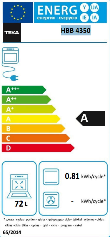 CARACTERÍSTICAS PRINCIPALES/nVER TODAS/nTotal capacidad interior, horno (s) 72/nLuz interior Sí/nTipo de control Giratorio/nClase de eficiencia de energía A/nAnti-huellas Sí