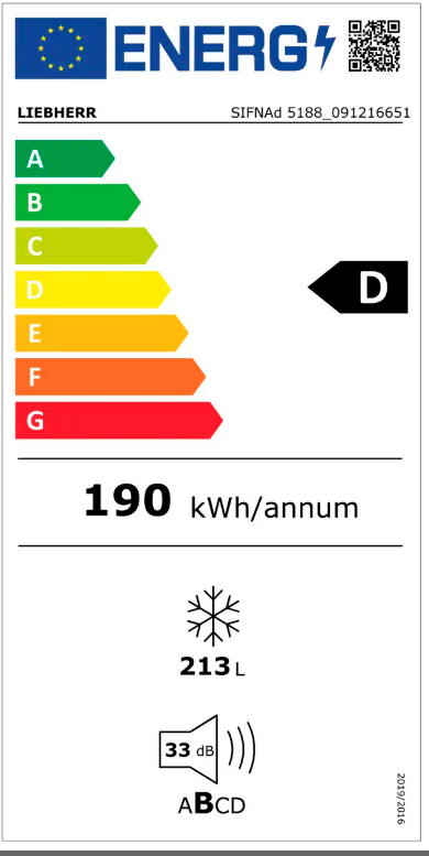 Consumo de energia ano / 24 h 190 / 0,520 kWh