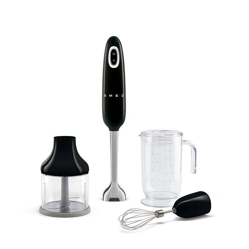 nCaracterísticasnn Batidora de mano 50? Style - Con accesoriosn Potencia: 700 W - Picadoran Color Negro n Material del cuerpo: Plástico n Material del brazo: Acero inoxidable n Material de las cuchillas: Acero Inoxidable n Material Jarra: Tritan Renew libre de BPA n Mango ergonómico y antideslizante para un confort excepcional durante el uso n Velocidad regulable n Motor de potencia 700 W y función Turbo n Cuchilla de Acero inoxidable n Sistema FlowBlend n Longitud del cable: 1,5 m n Accesorios incluidos: - Jarra 1,4 L de Tritan Renew (libre de BPA) - Picadora de capacidad 0,5 L - Varillas de Acero inoxidable n Dimensiones aparato (alto x ancho x fondo) 413 x 65 x 65 mm n Aliados versátiles para todos los gustos: Diseñada para ser duradera, funcional y práctica con su práctico mango ergonómico y antideslizante, la batidora de mano es un electrodoméstico indispensable para cocinar de forma rápida e inteligente. El cómodo mando de control de la velocidad te permite seleccionar fácilmente la intensidad deseada, garantizando la máxima versatilidad a la hora de cocinar, mientras que la función Turbo maximiza la potencia del motor de 700W. n El eje y las cuchillas de acero inoxidable se unen mediante un sistema exclusivo, lo que garantiza el máximo rendimiento. La batidora de mano Smeg viene con un completo conjunto de accesorios que amplían las posibilidades de uso: El vaso TritanTM con triturador de cuchillas de acero inoxidable y, por último, un batidor de acero inoxidable para montar varios platos. Todos los accesorios son extremadamente prácticos y fáciles de montar y desmontar.nn
