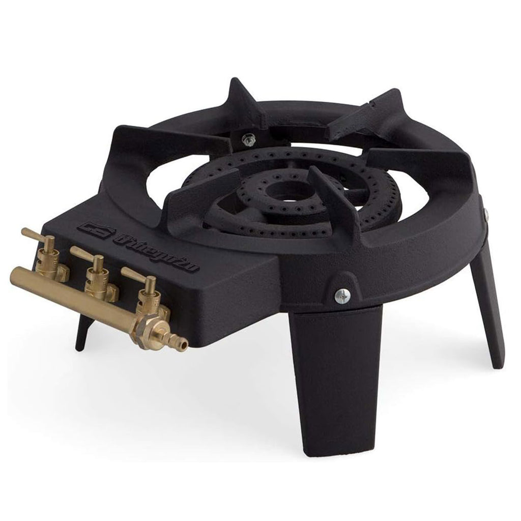 Tremp a gás. Potência: 7.000 W. Corpo e queimador em ferro fundido. Superfície resistente a altas temperaturas. Três torneiras independentes. Três zonas independentes (centro, direita e esquerda) Queimador duplo. Coroa quádrupla. Categoria I3+. UTILIZAÇÃO NO EXTERIOR. Diâmetro do queimador 18 cm. Tipo de gás G-30. Pressão 28-30 mbar. Gás tipo G-31. Pressão 37mbar. Peso 6,3 kg. Dimensões: 34,5x 19,5 x 19,5 x 41 cm. Peso 6,3 kg.