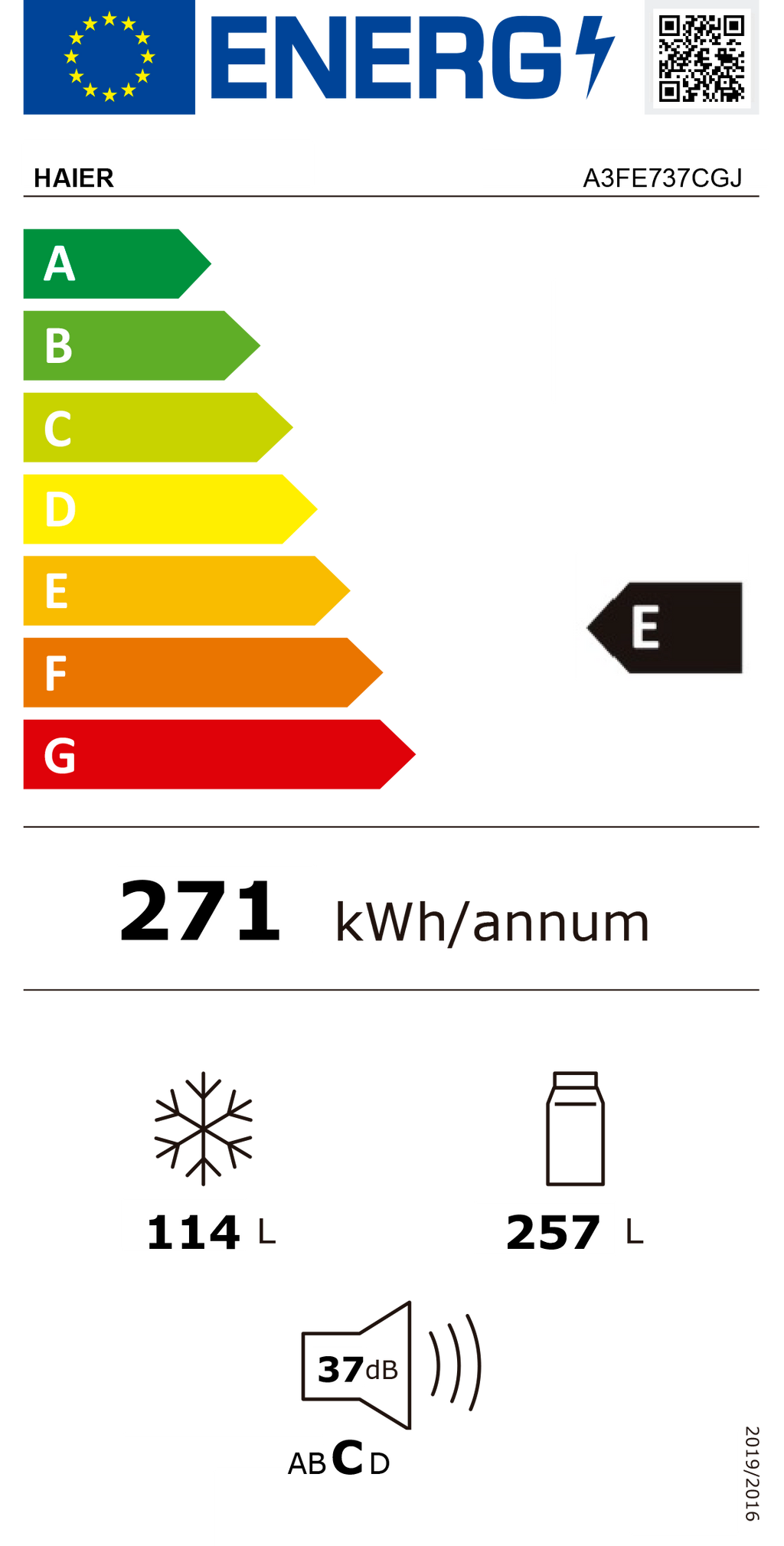 Capacidade total do compartimento de refrigeração (l) 257&lt br&gt Capacidade total do compartimento de congelação (l) 114&lt br&gt Capacidade total (l) 371&lt br&gt Número de portas 3 portas&lt br&gt Tecnologia de frio No Frost&lt br&gt MyZone Plus&lt br&gt Chiller - Fresh zone&lt br&gt Número total de prateleiras da porta 3&lt br&gt Número de gavetas 1&lt br&gt Número de gavetas de congelação 2&lt br&gt Número de suportes para os ovos 1 branco&lt br&gt Número de cuvetes para gelo 1 transparente&lt br&gt Número de prateleiras ajustaveis no compartimento do frigorífico 3&lt br&gt Capacidade total de congelação 10&lt br&gt Autonomia em caso de falha de energia (h) 13&lt br&gt Classe Energética E&lt br&gt Cor Silver&lt br&gt Dimensões (AxLxP): 2005x595x657 mm