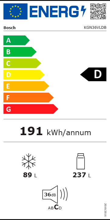 Consumo anual de energia (kWh/ano) 191 kWh/ano