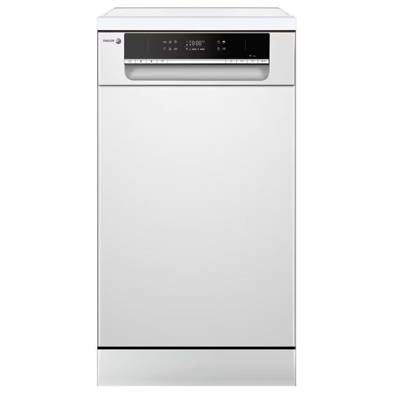 nCaracterísticasnn Lavavajillas libre instalación n Color Blanco - Autolimpiezan 9 servicios - Clase energética E - Ancho: 45 cm n Control Electrónico n Indicador de Consumo EcoBar n 6 Programas y 5 temperaturas n Sensor de Turbiedad Inteligente n Media Carga n Apertura durante ciclo AddDish n Reducción de tiempo Speed Function n Función Secado extra n Inicio diferido 1-24h n Indicador de Falta de Sal y Abrillant. n Programa Rápido de 30 minutos n Programa Automático 55-65ºC n Cesta superior Regulable en Altura Up&Down n Cesta Inferior con Varillas plegables n Dispensador Detergente Deslizante n Sistema de Seguridad Antidesbordamiento n Triple Filtrado n Motor de 2 Velocidades n Cuba de Acero Inoxidable n Potencia sonora (dB(A) re 1 pW) 47 n Consumo energía anual por 100 ciclos: 76 kWh100 ciclos n Consumo de agua por ciclo: 9 L n Dimensiones del aparato (alto x ancho x fondo): 845 x 448 x 600 mm n Fondo del aparato con puerta abierta 1175 mmnn