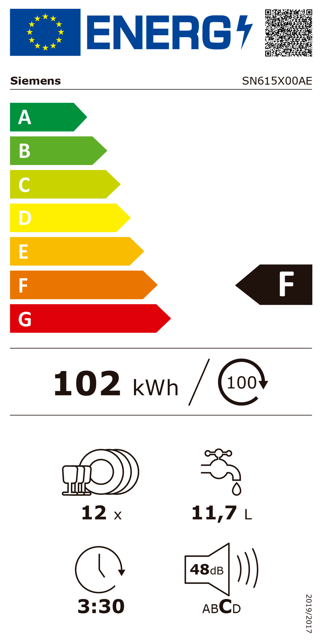 MÁQUINA DE LAVAR LOUÇA DE ENCASTRE SIEMENS SN615X00AE 12 TALHERES