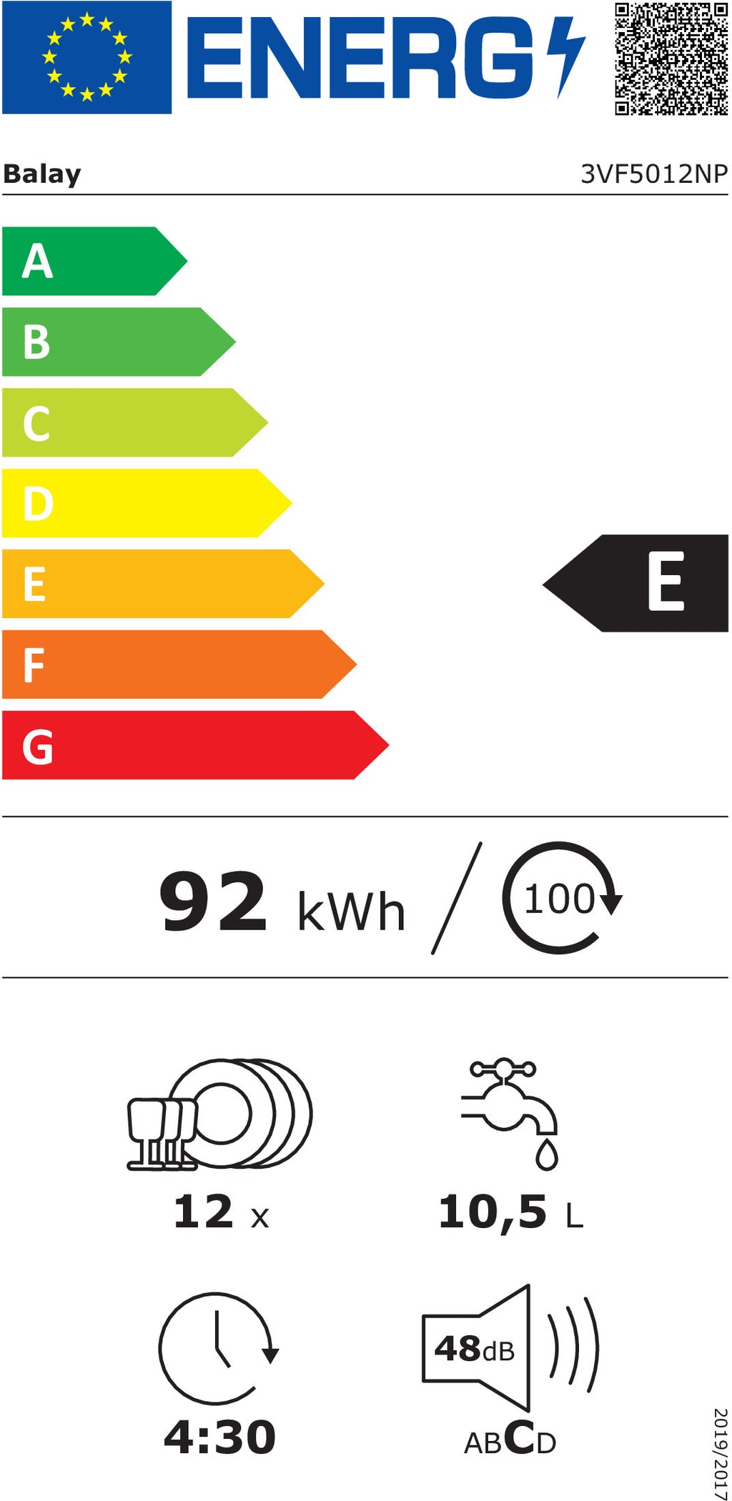 Nome (Modelo da marca do produto)Máquina de lavar louça Balay 3VF5012NP 12S