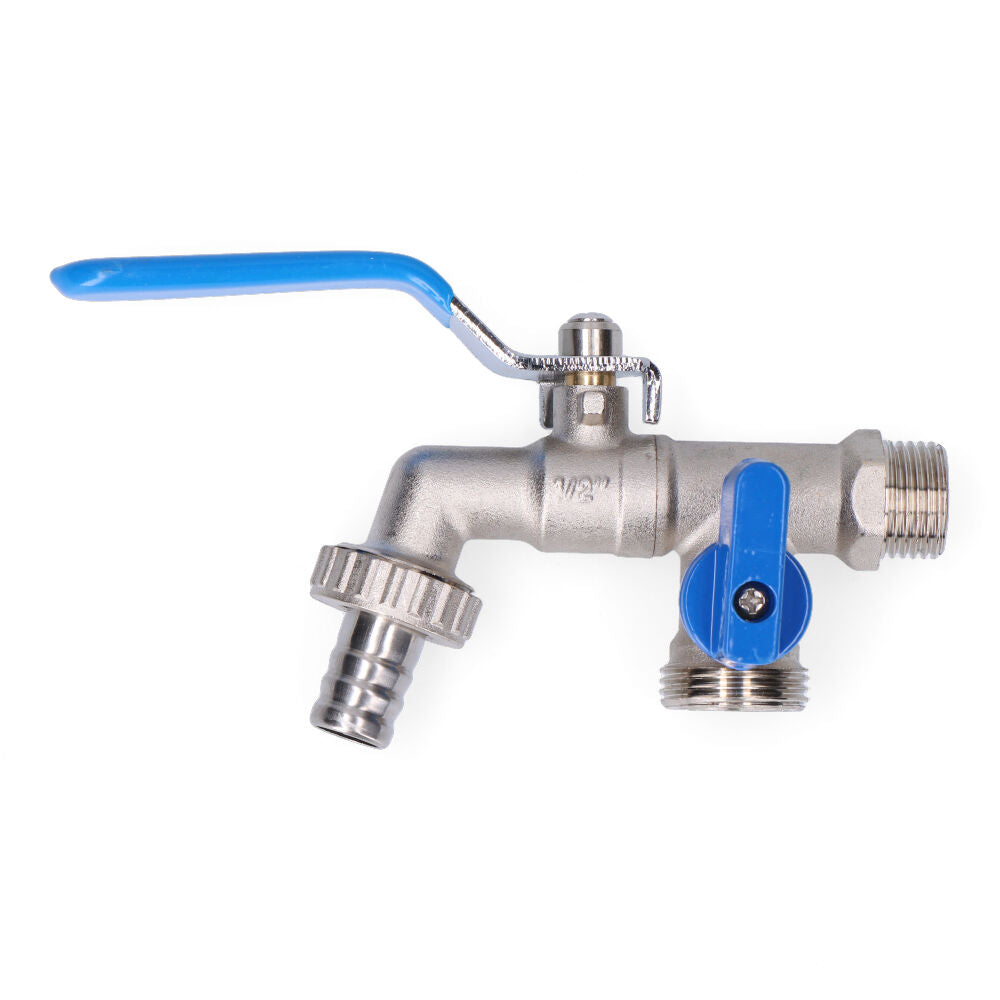 Torneira de esfera, saída dupla, com cotovelo para mangueira 1/2´´ x 3/4´´ x 3/4´´