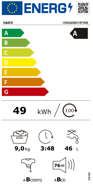Programas de lavagemHigiene/Alergia, Algodão, Lã, Mistura, Rápido, Vapor, Sintético, Centrifugação/Escorrimento