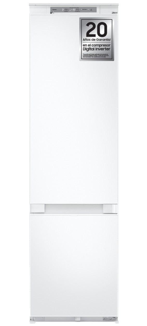 Capacidade Líquida Total (l): 298&lt br&gt Capacidade Líquida do Congelador (l): 74&lt br&gt Capacidade Líquida do Frigorífico (l): 224&lt br&gt Compressor Digital Inverter (20 Anos Garantia)&lt br&gt Refrigeração Twin Cooling? (Sistema de Arrefecimento Paralelo)&lt br&gt Conectividade: Wi-Fi integrado e compatibilidade App SmartThings&lt br&gt Placa Metal Cooling&lt br&gt Cool Select+ (4 modos) no congelador&lt br&gt No Frost&lt br&gt Prateleira para Garrafas multifunções (Rack &amp ShelfTM)&lt br&gt Display Exterior&lt br&gt Consumo de Energia Anual (kWhano): 183&lt br&gt Nível de ruído: 35 dBA&lt br&gt Unidade de encastre total com instalação em slide&lt br&gt Classe de Eficiência Energética: D&lt br&gt Cor: Branco&lt br&gt Dimensões (AxLxP): 1935x540x550 mm&lt br&gt