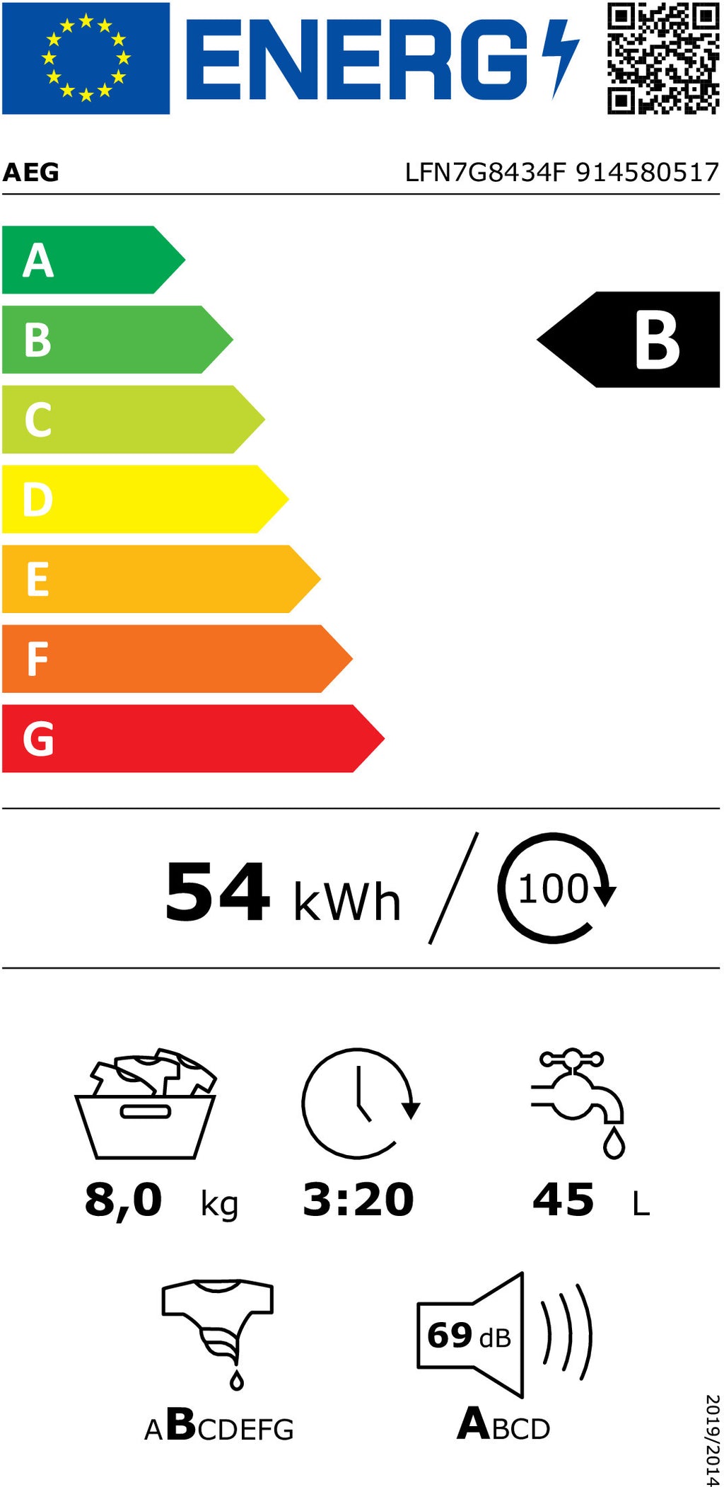 MÁQUINA DE LAVAR ROUPA DE ENCASTRE AEG LFN7G8434F 8KG