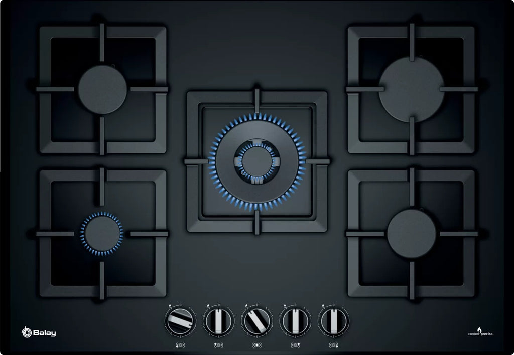 CARACTERÍSTICAS PRINCIPALES/nVER TODAS/nNumero de zonas cocción 5/nTipo de control Giratorio/nNúmero de niveles de potencia 9/nAncho (Aprox.) 75 cm