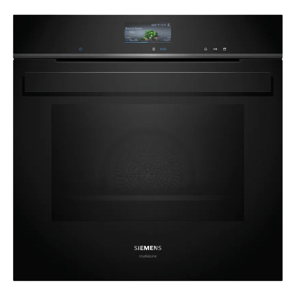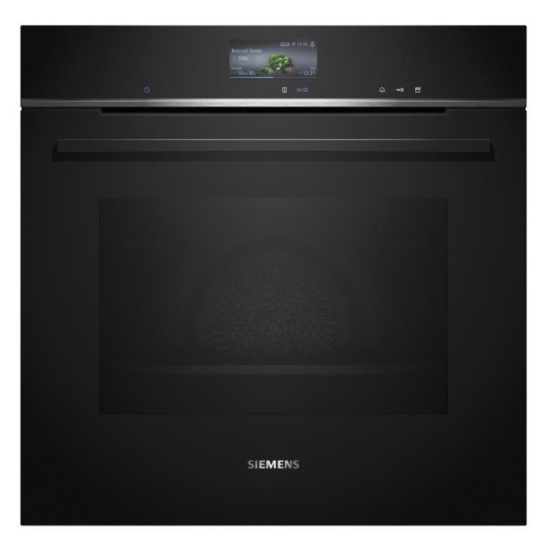 Siemens HS736G3B1. Tamanho do forno: Médio, Tipo de forno: Forno elétrico, Capacidade interior do(s) forno(s) totais: 71 l. Local de colocação: Embutido, Cor do produto: Preto, Aço inoxidável, Tipo de controlo: Toque. Tipo de relógio: Electrónico, Aplicações de controlo suportadas: Home Connect. Classe de eficiência energética: A+, Consumo energético (convencional): 0,87 kWh, Consumo energético (convecção forçada): 0,69 kWh. Quantidade de lâmpadas: 1 lâmpada(s), Tipo de lâmpada: LED