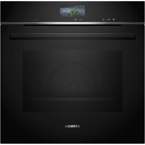 Siemens iQ700 HR736G1B1. Tamanho do forno: Médio, Tipo de forno: Forno elétrico, Capacidade interior do(s) forno(s) totais: 71 l. Local de colocação: Embutido, Cor do produto: Preto, Aço inoxidável, Tipo de controlo: Sensor. Tipo de relógio: Electrónico, Tipo de temporizador: Digital, Aplicações de controlo suportadas: Home Connect. Classe de eficiência energética: A+, Consumo energético (convencional): 0,87 kWh, Consumo energético (convecção forçada): 0,69 kWh. Comprimento do compartimento de instalação: 56,8 cm, Largura do compartimento de instalação: 55 cm, Altura do compartimento de instalação: 59,5 cm