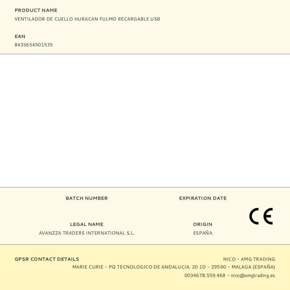 Ventoinha de pescoço modelo huracan fulmo. cor: branco. caraterísticas: 5v 3000mah, cabo tipo c, 3 níveis de intensidade