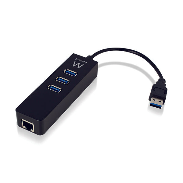 Ewent EW1140. Interface do host: USB 3.2 Gen 1 (3.1 Gen 1) Type-A, Interfaces de hub: RJ-45, USB 3.2 Gen 1 (3.1 Gen 1) Type-A. Velocidade real de transferência: 5000 Mbit/s, Cor do produto: Preto, Comprimento do cabo: 0,18 m. Largura: 110 mm, Profundidade: 32 mm, Altura: 20 mm