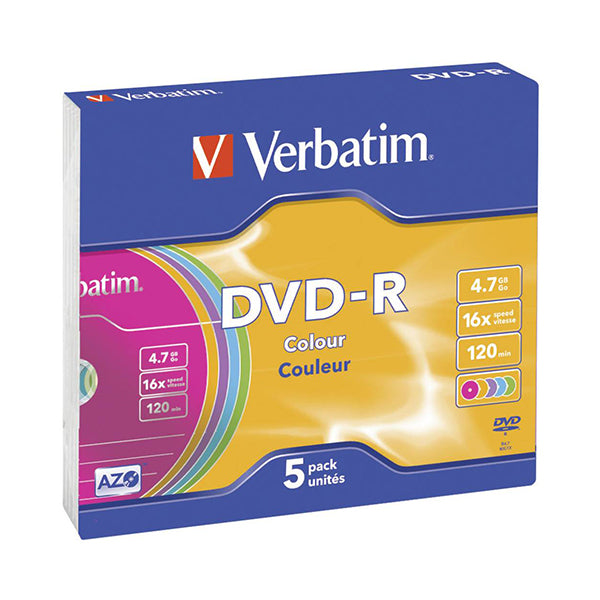 VERBATIM DVD-R 16X 4.7GB COLOUR CAIXA SLIM PACK 5