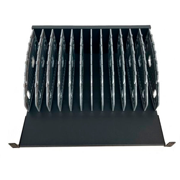 Prateleira de 19" para 12 Portáteis até 17,3", tablets e smartphones, com gestão de cabos, cor preta RAL 9005
