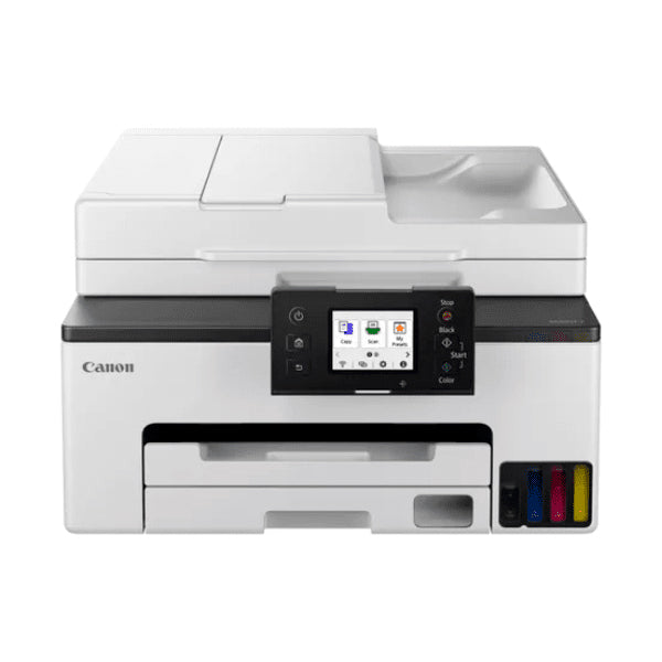 Canon MAXIFY GX2050. Tecnologia de impressão: Jato de tinta, Impressão: Impressão a cores, Resolução Máxima: 600 x 1200 DPI. Cópia: Cópia a cores. Digitalização: Digitalização a cores, Resolução óptica de digitalização: 1200 x 2400 DPI. Envio de fax: Fax a cores. Funções duplex: Impressão. Dimensão máxima de papel ISO A-series: A4. Wi-Fi. Cor do produto: Preto, Branco, Pesos e dimensõesLargura374 mmProfundidade510 mmAltura260 mmPeso8,1 kg