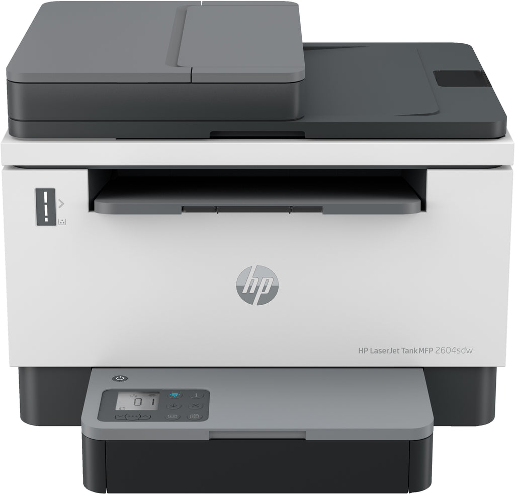 HP LaserJet Multifunções Tank 2604sdw, Preto e branco, Impressora para Empresas, Digitalizar para e-mail; Digitalizar para e-mail/PDF; Digitalizar para PDF; Impressão frente e verso; ADF para 40 folhas; Tamanho compacto; Eficiência energética; Wi-Fi de banda dupla. Tecnologia de impressão: Laser, Impressão: Impressão a preto e branco, Resolução Máxima: 600 x 600 DPI. Cópia: Cópia a cores, Resolução de cópia máxima: 600 x 1200 DPI. Digitalização: Digitalização a cores, Resolução óptica de digitalização: 600 x 1200 DPI. Dimensão máxima de papel ISO A-series: A4. Wi-Fi. Impressão directa. Cor do produto: Preto, Cinzento