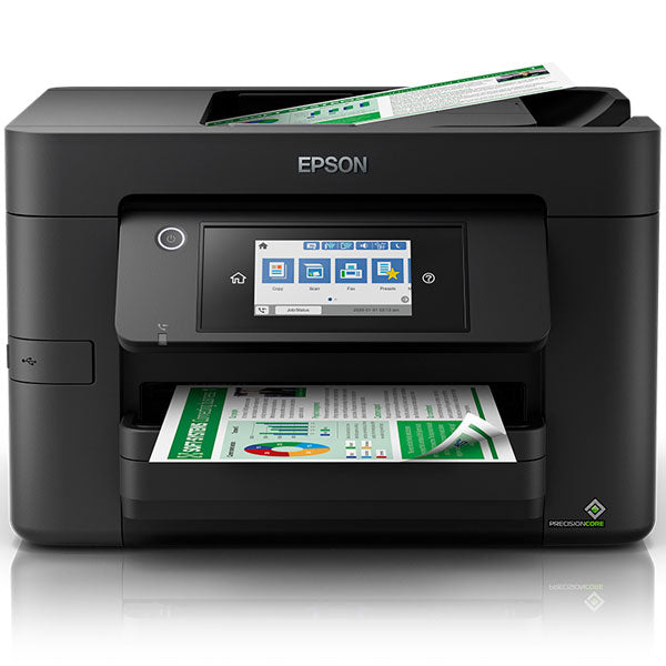 Epson WorkForce Pro WF-4820DWF. Tecnologia de impressão: Jato de tinta, Impressão: Impressão a cores, Resolução Máxima: 4800 x 2400 DPI, Velocidade de impressão (cores, qualidade normal, A4/US Letter): 12 ppm. Digitalização: Digitalização a cores, Resolução óptica de digitalização: 1200 x 2400 DPI. Envio de fax: Fax a cores. Dimensão máxima de papel ISO A-series: A4. Wi-Fi. Cor do produto: Preto