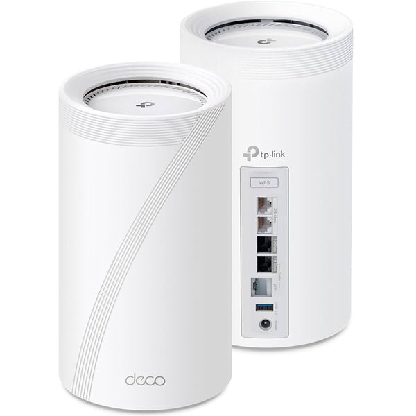 TP-Link Deco BE85 (2-Pack). Cor do produto: Branco, Tipo de antena: Interno, Tipo de produto: Sistema de rede. Banda wi-fi: Tri-band (2.4 GHz 5 GHz 6 GHz), Padrão Wi-Fi máximo: Wi-Fi 7 (802.11be), Velocidade de transferência de dados WLAN (máx.): 19000 Mbits. Seguraça de firewall: SPI Firewall, Sistemas operativos móveis compatíveis: Android, iOS, Funcionalidades de controlo parental: Hora de dormir, Filtro de conteúdos, Perfis personalizados, Tempo em família, Pause the.... Voltagem de entrada AC: 100 - 240 V, Corrente de entrada no transformador CA: 2 A, Frequência de entrada AC: 50 - 60 Hz. Certificados de conformidade: RoHS, CE