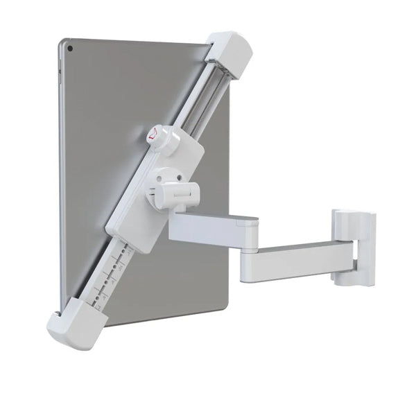 Adapta-se a tablets na faixa de tamanho de 7 "- 14" 17,7 cm - 35,5 cm.A faixa de abertura da braçadeira é 8,5 "- 16" 21,5 cm - 41 cm.Espessura profundidade máxima: 0,6 " 15 mm.Distância mínima da parede: 2,4 " 6,2 cm.Distância máxima da parede: 11,5 " 29,3 cm.Peso máximo do comprimido: 3 lbs 1,4 kg.O suporte tem uma rotação de tablet de 360 ??° e 3 pivôs que: giram perto da parede 180 °, dobra 360 °, giram perto do grampo do tablet 360 °, além de uma inclinação sem ferramenta de -90 ° a 20 °.Pode ser instalado na parede para manter a sua mesa livre ou na parte inferior dos armários da cozinha para ler as receitas e manter o balcão livre.