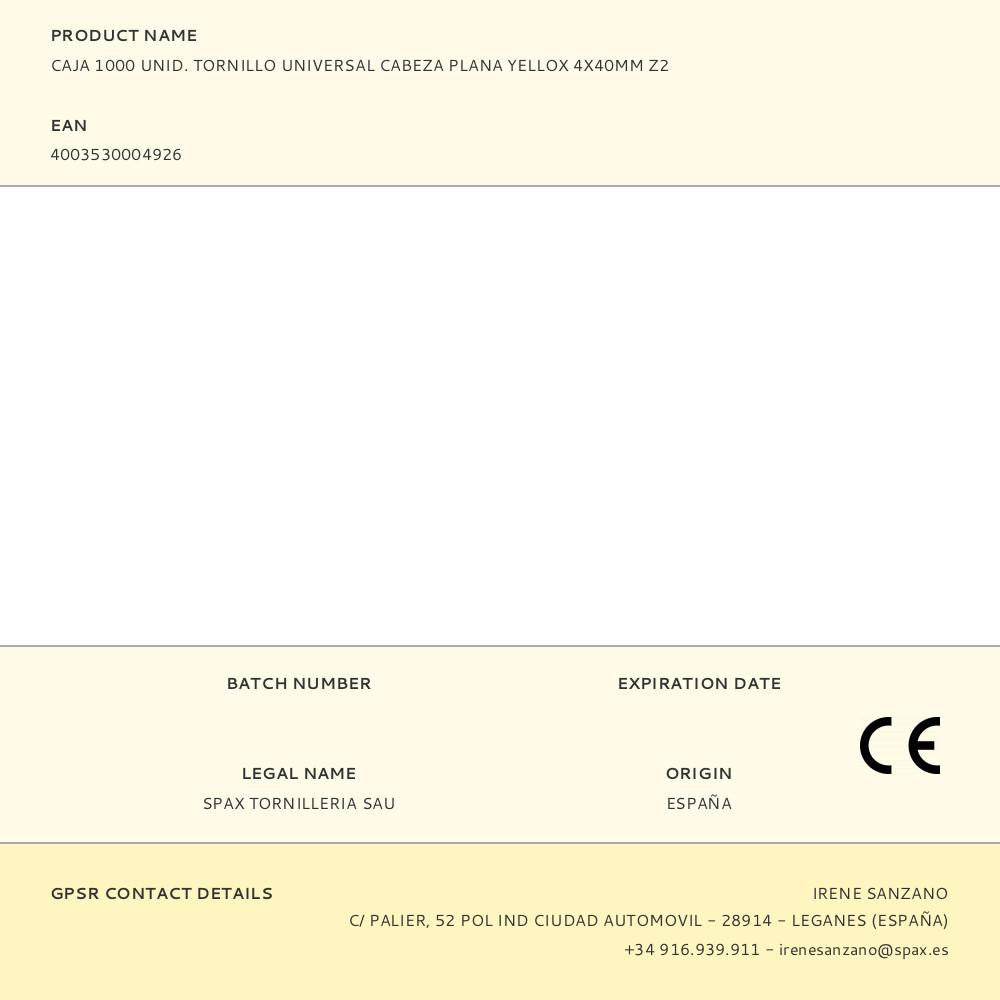 Caixa de 1000 unidades yellox parafuso cabeça plana universal 4x40mm rosca completa, fenda cruzada z2, 4cut - 1081020400405