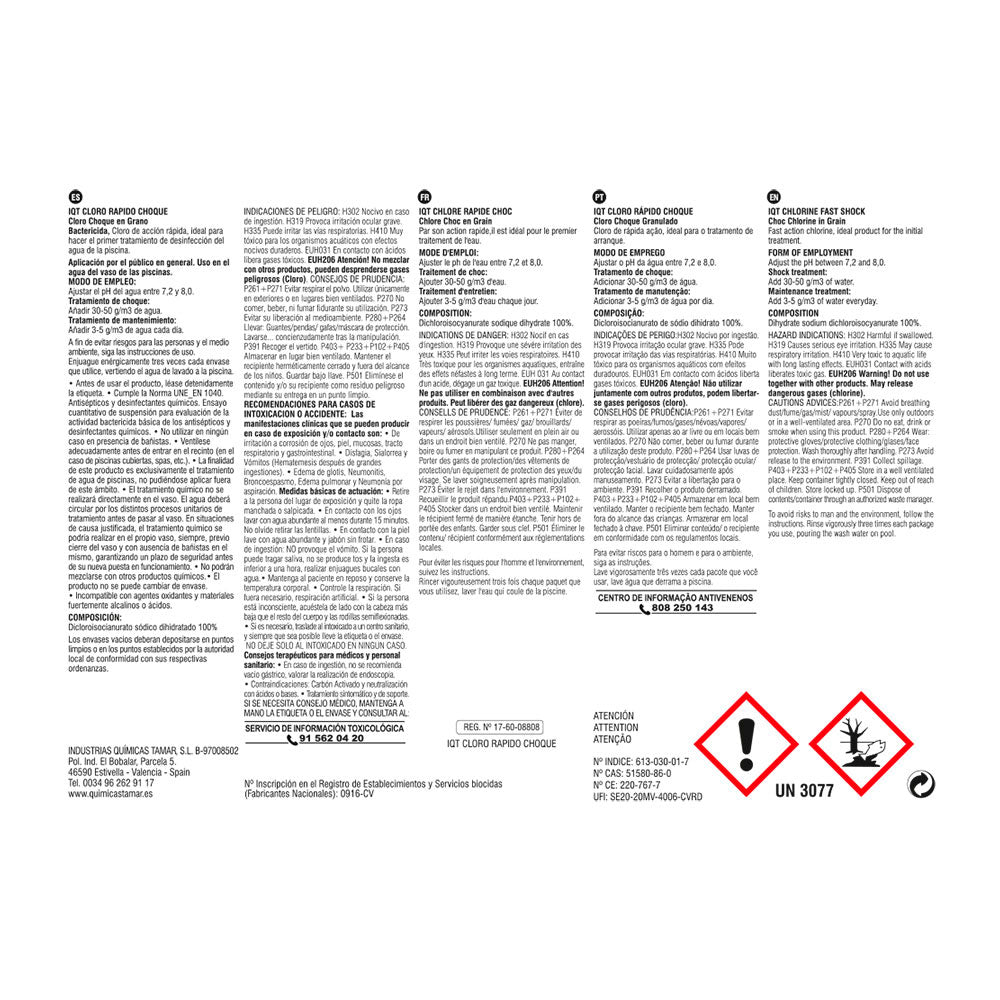 Cloro de choque granulado 1kg genérico ´´use biocidas com segurança. leia sempre o rótulo e as informações sobre o biocida antes de usar´´ tamar