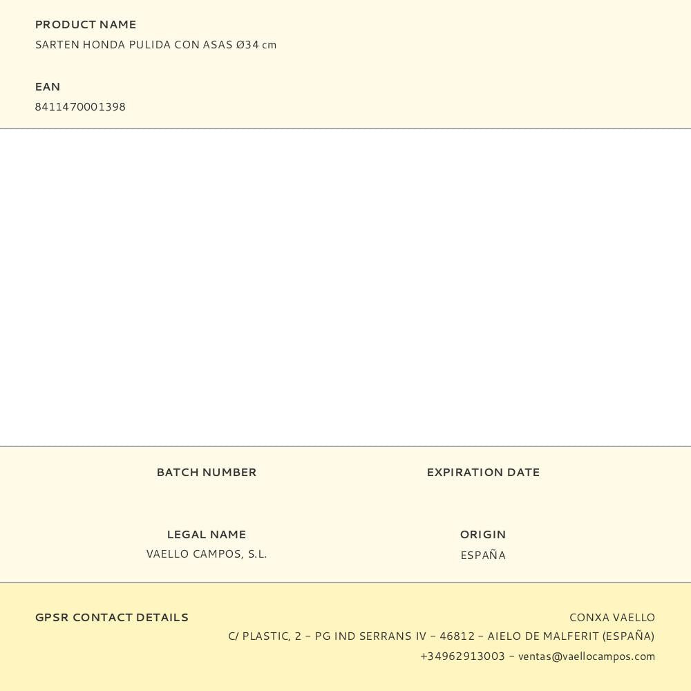 FRIGIDEIRA FUNDA POLIDA COM PEGAS Ø34CM. VAELLO