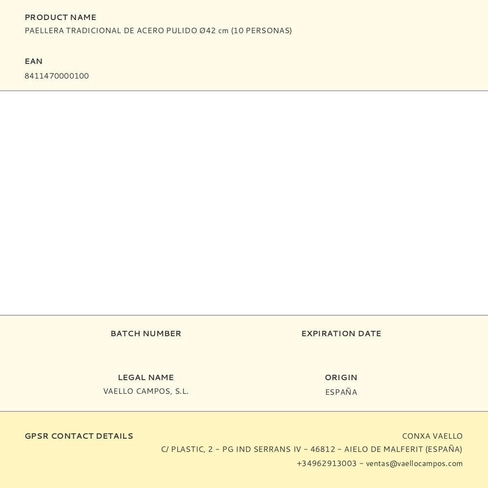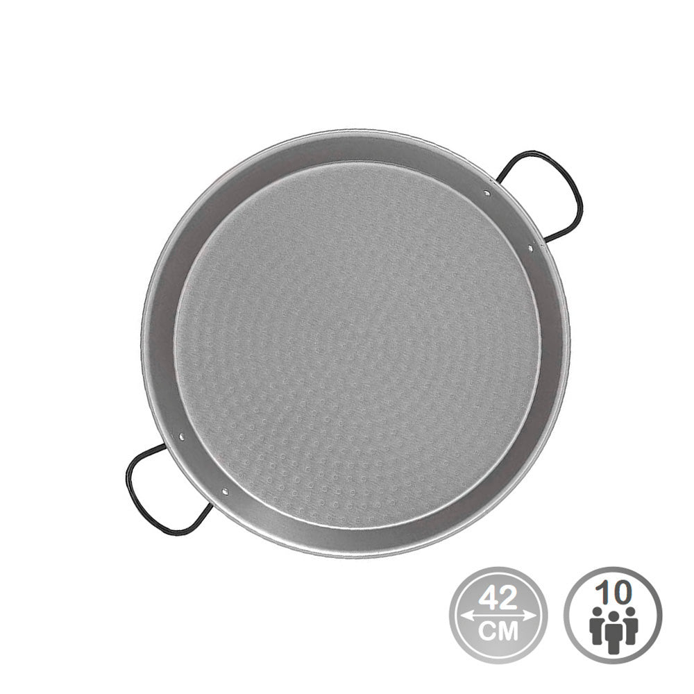 Frigideira paelha tradicional de aço polido ø42cm (para 10 pessoas) para gás. fabricado em espanha. atenção: requere manutenção. deve ser guardada com uma capa de aceite. vaello