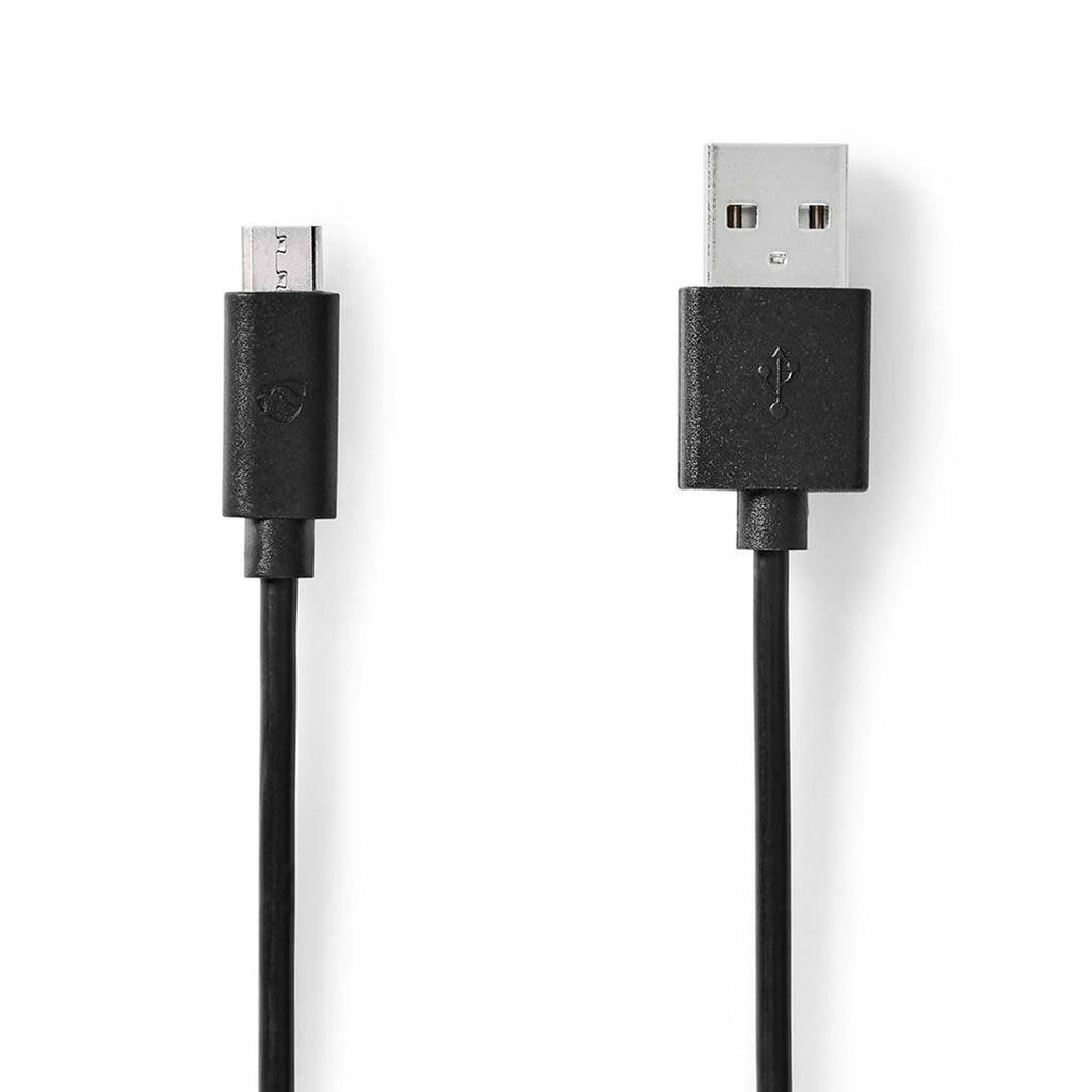 USB 2.0 | USB-A Macho | USB Micro-B Macho | 11W | 480Mbps | Niquelado | 2,00m | Rodada | PVC | Preto | Rótulo